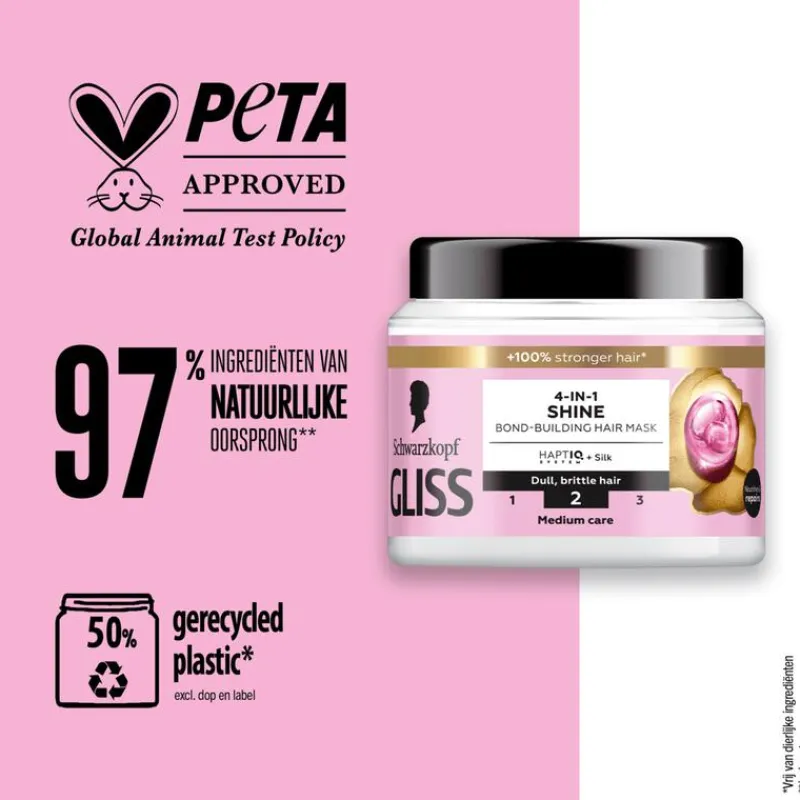 - Gliss Care Level: 2 – Medium verzorging, met een uitgebalanceerde samenstelling van voedende ingrediënten.