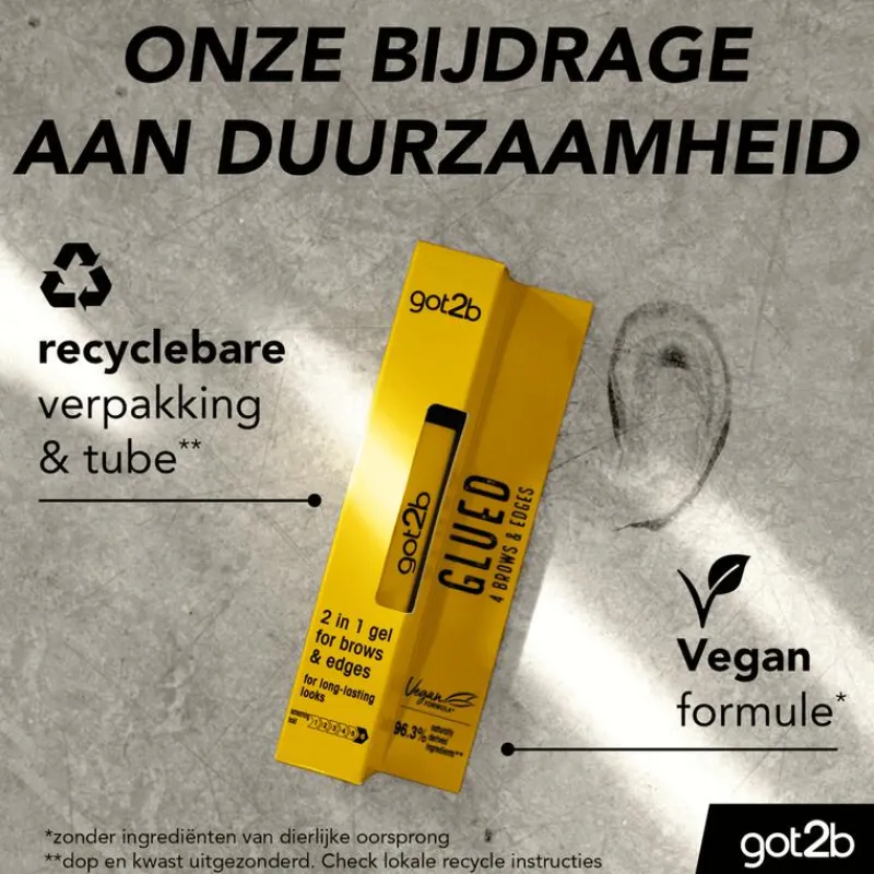 Got2b Glued 4 Brows & Edges 2in1 Gel, voor langdurige fixatie. Style en fix je wenkbrauwen en haarlijn onderweg met Got2b.