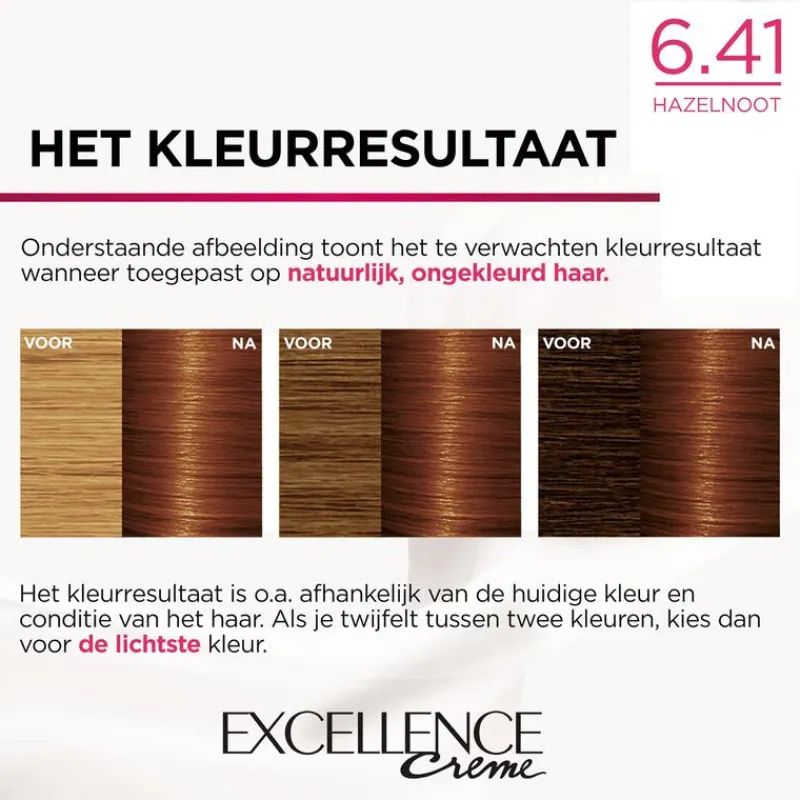 - Excellence Crème biedt een intensieve verzorging voor je haar tijdens het kleurproces, dankzij de drievoudig verzorgende formule die voeding, hydratatie en bescherming combineert.