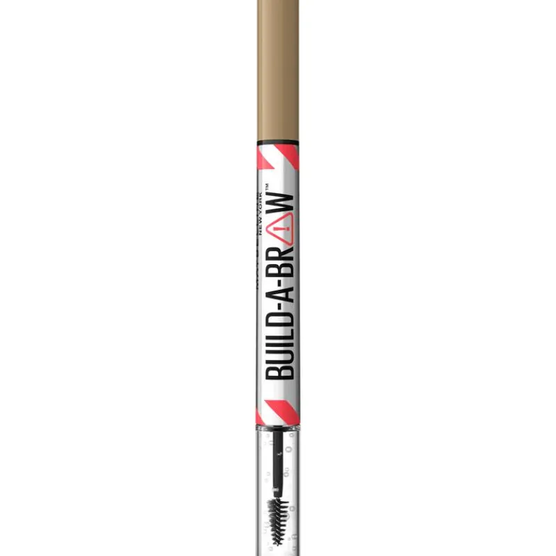 De Build-a-Brow 2-in-1 wenkbrauwpen en -fixeergel van Maybelline New York creert natuurlijk ogende, vollere wenkbrauwen in slechts 2 eenvoudige stappen. De wenkbrauwpen heeft een uiterst nauwkeurige punt waardoor je je wenkbrauwen kunt vullen met haarfijne lijntjes zonder klontjes. Maak je look vervolgens compleet door te blenden en je wenkbrauwen vorm te geven met de fixerende gel. Wenkbrauwen blijven de hele dag in model! Dit product maakt een natuurlijke transformatie mogelijk voor alle soorten wenkbrauwen, hoe dun of ongelijkmatig ze ook zijn. Het is alsof je helemaal geen make-up op hebt!