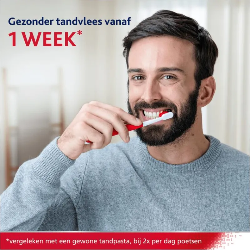 parodontax Active Repair Tandvlees Fresh Mint tandpasta. Helpt vroege tekenen van bloedend tandvlees om te keren door de belangrijkste oorzaak, tandplak, aan te pakken. Het verwijdert actief tandplakbacteriën, waardoor tandvlees kan herstellen en een strakke afdichting rondom tanden kan vormen om bloedend tandvees te helpen stoppen. Voor gezond tandvlees en sterke tanden. Klinisch bewezen formule die tandplakbacteriën actief verwijdert om bloedend, gezwollen en ontstoken tandvlees te helpen herstellen.• Klinisch bewezen dat het bloedend, gezwollen en ontstoken tandvlees herstelt vanaf één week*.• Helpt vroege tekenen van bloedend tandvlees tegen te gaan door tandplakbacteriën actief te verwijderen.• Helpt het tandvlees om een goede aansluiting met de tanden te houden.• Speciaal geselecteerde ingrediënten om de smaak in balans te brengen, gecombineerd met verkoelende bestanddelen voor een frisse ervaring.Bij 2x daags poetsen.