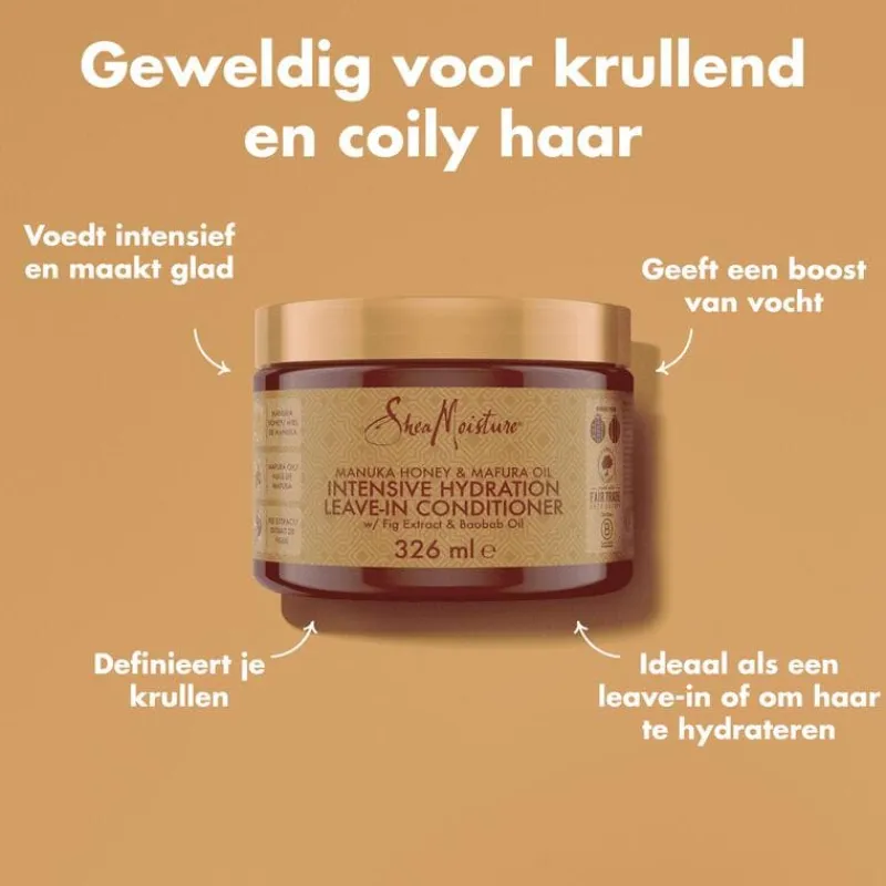Leave-in conditioner die het haar langdurig hydrateert en verzorgt, zonder uit te spoelen.