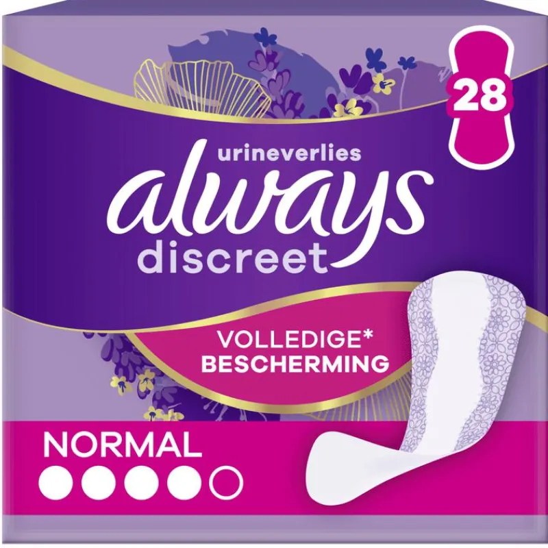 Gebruik Always Discreet Normal inlegkruisjes voor urineverlies als je wat extra bescherming nodig hebt. Deze inlegkruisjes zijn ultradun en hebben een flexibele kern zodat ze zeer comfortabel zijn. Ze zijn ontworpen om vocht vast te houden en geurtjes te neutraliseren voor een frisser gevoel. Probeer Always Discreet Plus inlegkruisjes, de beste inlegkruisjes voor urineverlies uit het Always Discreet assortiment als je last hebt van licht urineverlies of vaak naar het toilet moet.