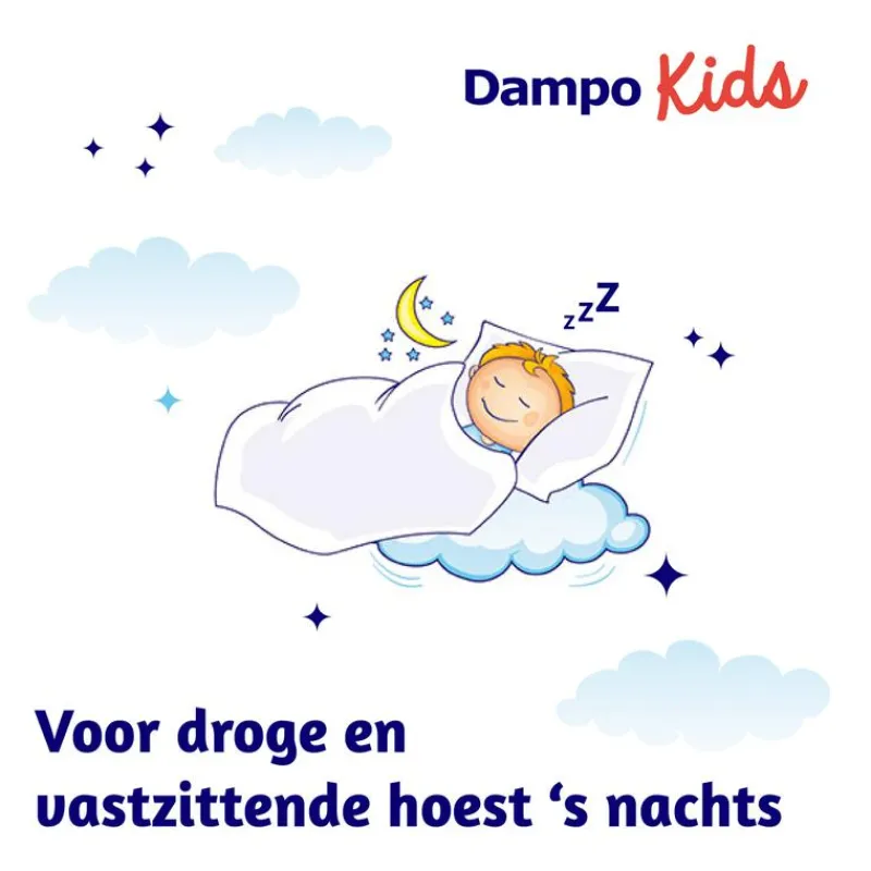 Dampo Kids Alle Hoest Nacht vermindert het hoesten tijdens de nacht, wat helpt bij een goede nachtrust. Dampo Kids Alle Hoest Nacht bevat natuurlijke planten extracten die verlichting geven en een verzachtend effect hebben op droge en vastzittende hoest tijdens de nacht. De natuurlijke plantenextracten hebben een hydraterende en verzachtende werking op de slijmvliezen van de bovenste luchtwegen. Hierdoor wordt irritatie van het slijmvlies en de keel bij droge hoest verlicht. Het slijm bij vastzittende hoest wordt los gemaakt, waardoor het makkelijker op te hoesten is. Daarnaast helpen de plantenextracten de slijmvliezen te beschermen en de functies van de bovenste luchtwegen te bevorderen.