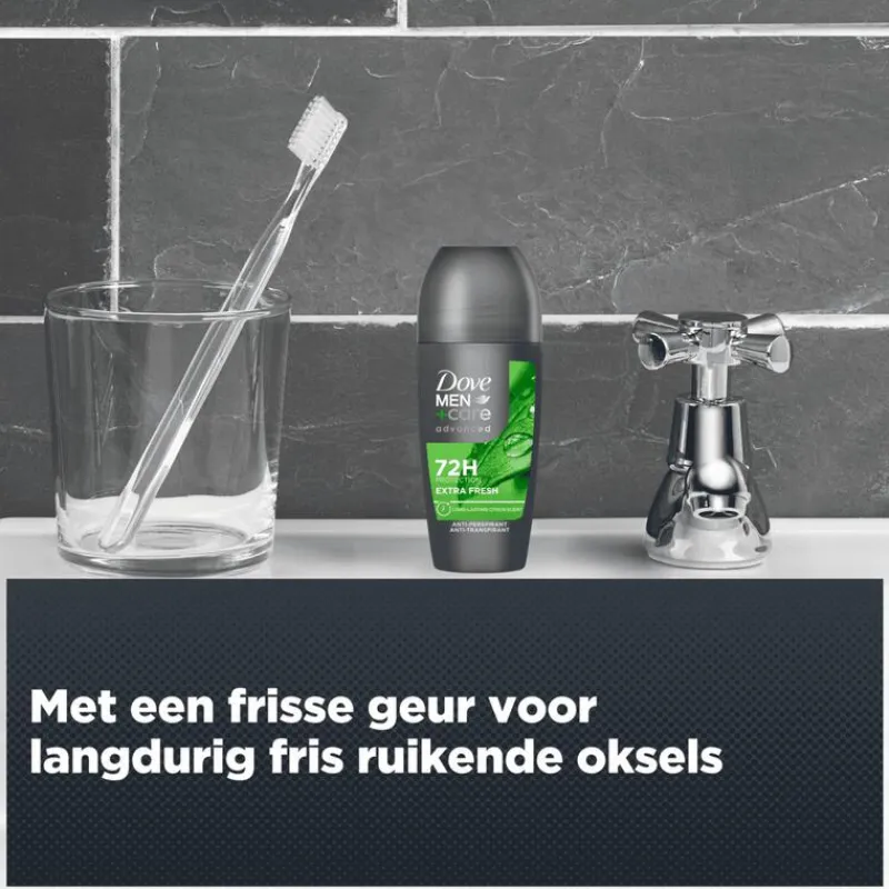 Dove Men+Care Advanced Extra Fresh Anti-Transpirant Deodorant Roller biedt tot 72 uur lang bescherming tegen zweet en nare geurtjes en verzorgt je huid.