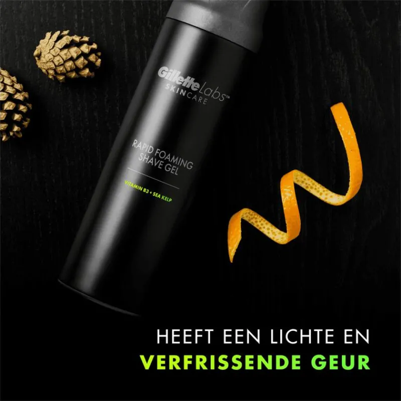 De GilletteLabs Snel Schuimende Scheergel van Gillette verkoelt om de huid te kalmeren en helpt de huid tijdens het scheren te beschermen.