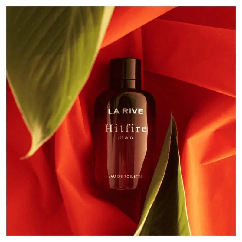 La Rive Hitfire Man Eau De Toilette is een houtachtige en bloemige geur voor de moderne man. Het parfum verbindt veel tegenstellingen tot een unieke en heerlijke combinatie van geuren. Gewaagd maar toch vertrouwd. De bloemige topnoten van het parfum bestaan uit bergamot en violet. De hartnoten bestaan uit violet en jasmijn. De basisnoten bestaan uit cederhout en muskus. Deze zorgen voor een zeer warme, mannelijke en intense basis. De flacon van La Rive Hitfire is erg opvallend. Het is recht van vorm met een knalrode kleur welke overloopt in intens zwart. La Rive bewijst hiermee dat contrasten soms juist goed bij elkaar kunnen passen.