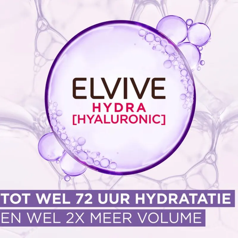 Het L’Oréal Paris Elvive Hydra Hyaluronic Hydratatie Masker is gemaakt met Hyaluronzuur en geeft het haar een intense hydratatie boost door de haarvezel te omsluiten en tot wel 72 uur te hydrateren.