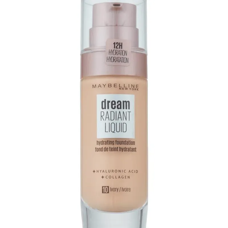Maybelline New York Dream Radiant Liquid 10 Ivory is een foundation met verzorgend collageen en hyaluronzuur voor een egaal uitziende teint.