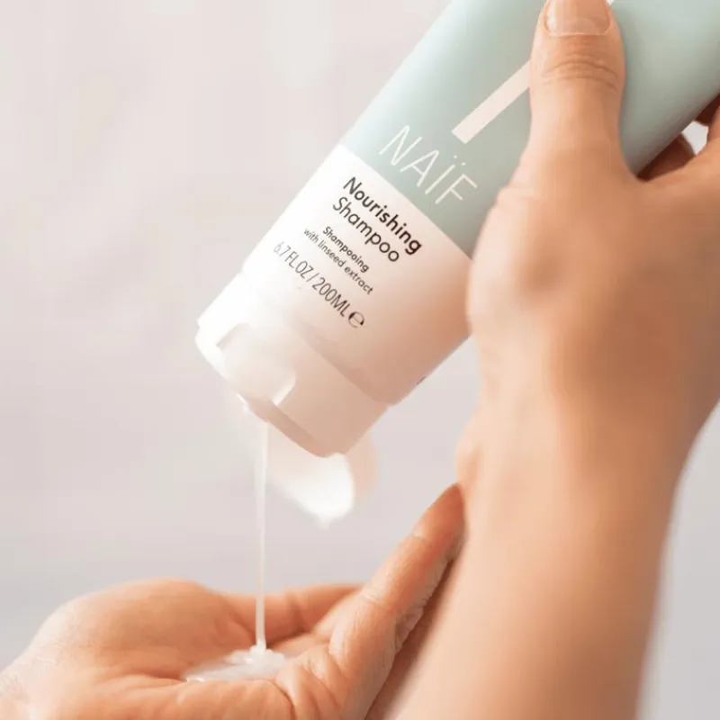 Maak je haar nat. Masseer dan de shampoo in, even laten intrekken en spoel uit. Verzorg je kwetsbare lokken vervolgens met Naïf’s Verzachtende Conditioner.