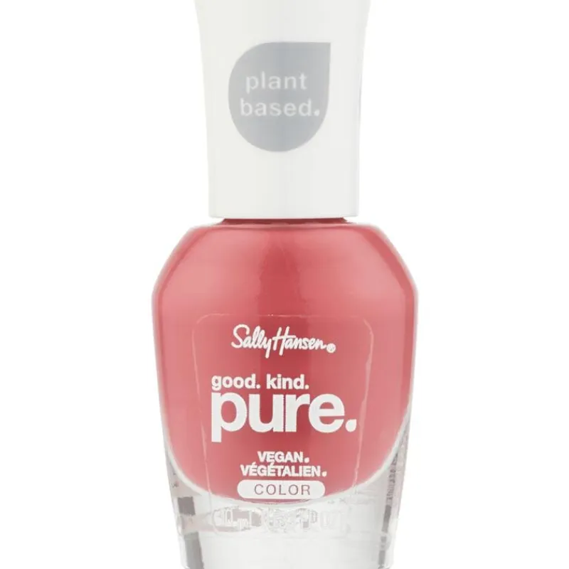 Sally Hansen introduceert: Good.Kind.Pure, haar eerste plantaardige, 100% vegan nagellak. Met zestien unieke kleuren en twee verzorgingsproducten biedt de Good. Kind. Pure.™ lijn, prachtige tinten die geinspireerd zijn op de schatten uit de natuur. Ook het brede kwastje en de verpakking zijn volledig vegan voor een 100% clean manicure. Gebruik uit de vegan verzorgingslijn de Hardner om kwetsbare nagels te beschermen tegen breken, scheuren en splijten. Voor de finishing touch voeg je de Top Coat toe voor extra glans. Go vegan!