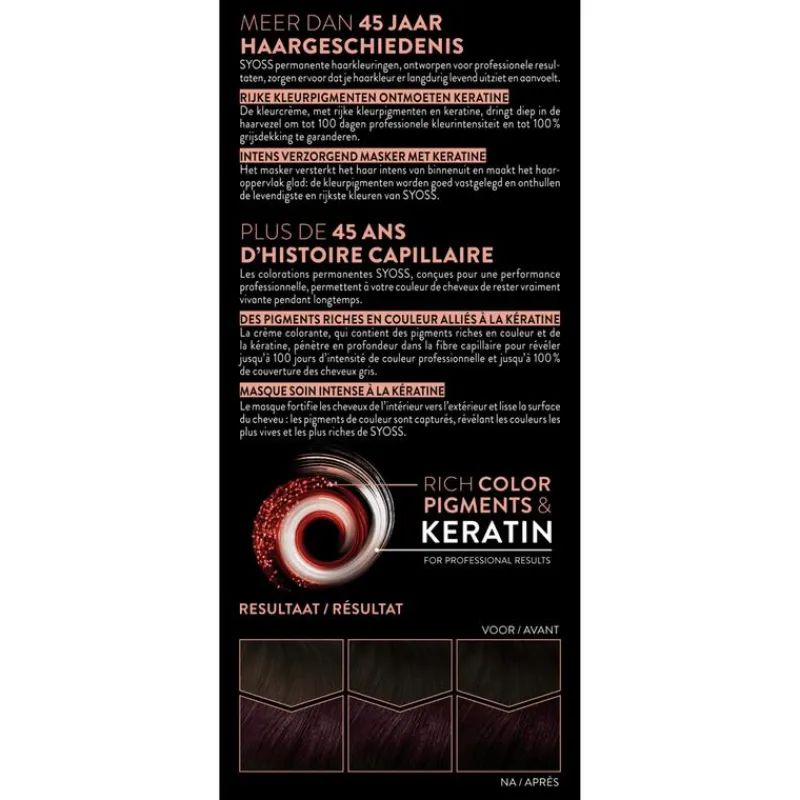 Bij Syoss is het onze missie om je de salonkwaliteit te bieden die je haar verdient. Syoss staat voor professionele kwaliteit en biedt een fantastisch resultaat bij elk gebruik. Onze formules zijn zowel ontwikkeld en getest door kappers. Met Syoss haarverf brengen we de nieuwste trendy haarkleuren zoals ze rechtstreeks uit de salon komen.