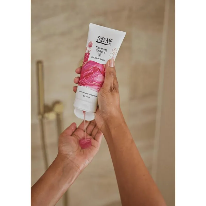 Therme Blooming Selfcare is geïnspireerd op het belang van liefdevolle aandacht geven aan jezelf, zodat je die ook kunt geven aan anderen. Creëer je eigen wellnessritueel en verwen je huid na het douchen met een Therme Blooming Selfcare verzorgingsproduct.