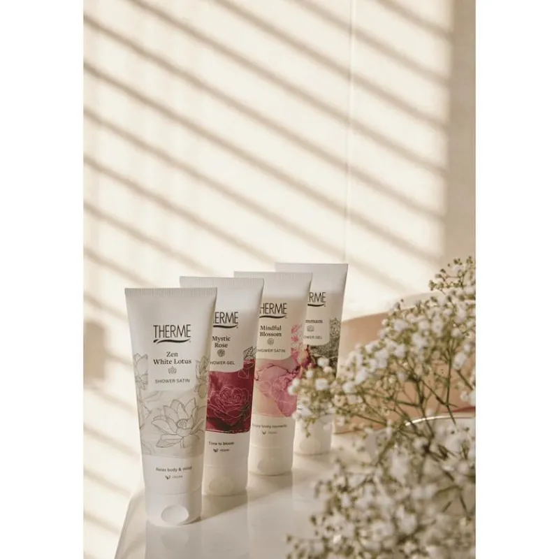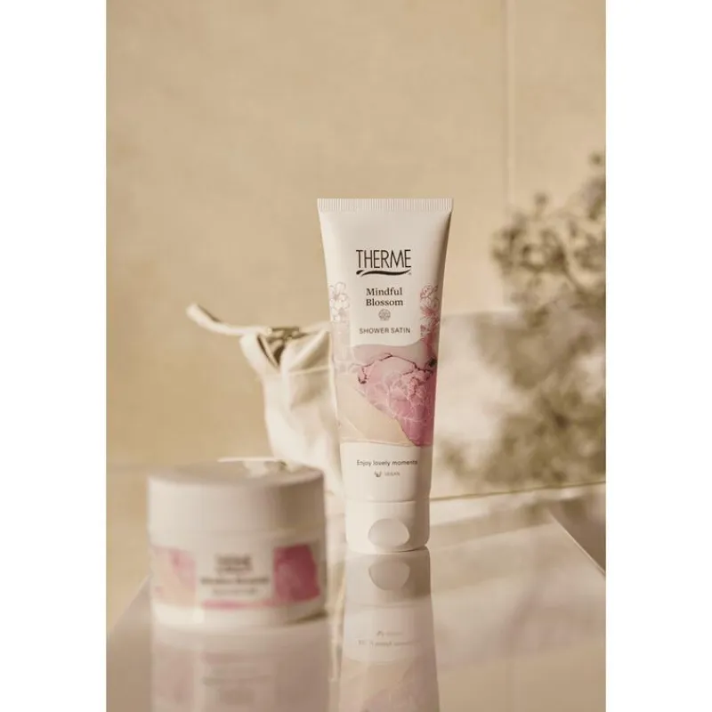 Therme Mindful Blossom is geïnspireerd op de vluchtige schoonheid van bloesem, een symbool voor zachtheid, tederheid en klein geluk.Creëer je eigen wellnessritueel en verwen je huid na het douchen met een Therme Mindful Blossom verzorgingsproduct.