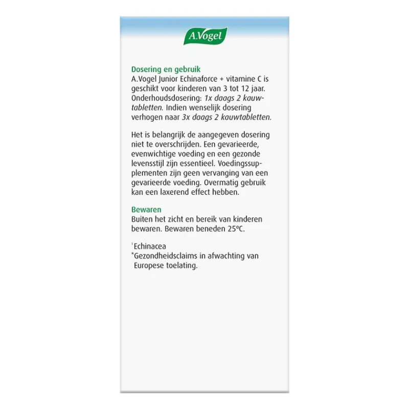 Er zijn omstandigheden waarbij kinderen wel wat ondersteuning voor de weerstand1* kunnen gebruiken. Daarvoor kun je Echinaforce Junior gebruiken. Een kauwtablet op basis van Echinacea purpurea. Met vitamine C en een lekkere framboossmaak.