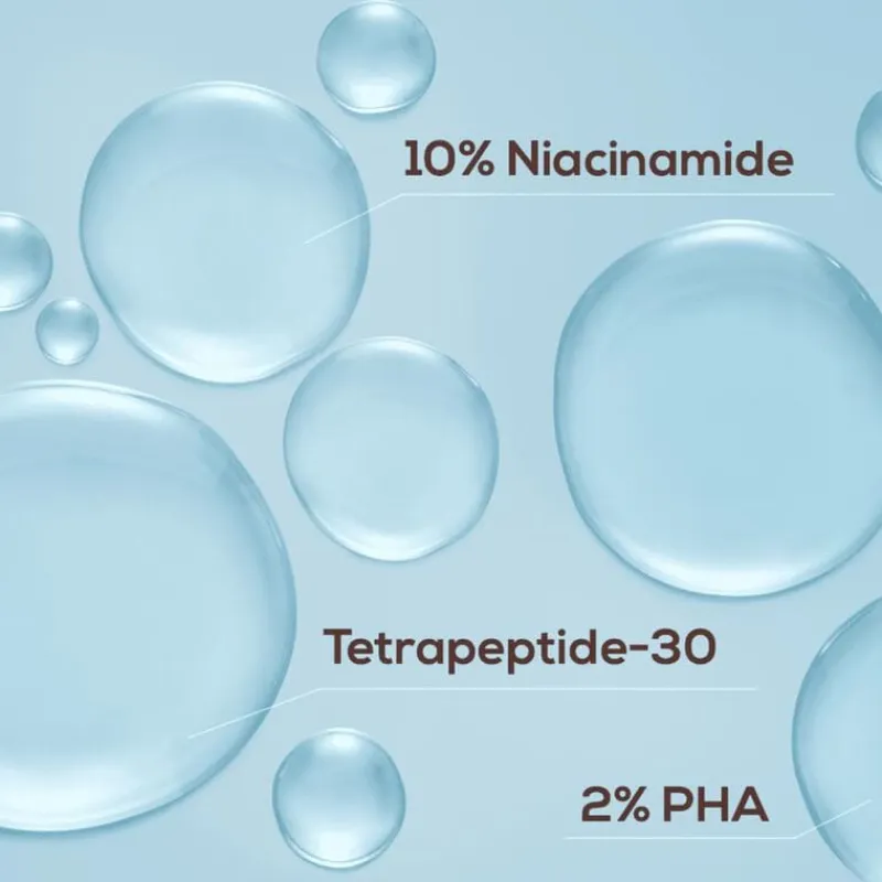 1. Verheldert – De hoge concentratie niacinamide verheldert de huidteint en egaliseert de huidtextuur. Het ondersteunt de huidbarrière, helpt een te veel aan melanine te verminderen en daarnaast verfijnt het de poriën.