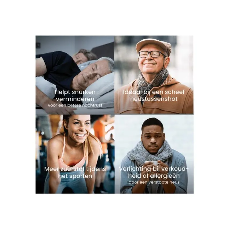 De huidvriendelijke kleefstrip bevat twee buigzame strookjes, waarmee je de strip eenvoudig over de neusbrug plakt. De strip tilt de neusvleugels extra stevig op, waardoor de neusgangen zich openen en je direct meer lucht krijgt. Deze verbeterde luchtstroom kan snurken door een verstopte neus helpen verminderen of zelfs helemaal laten verdwijnen.