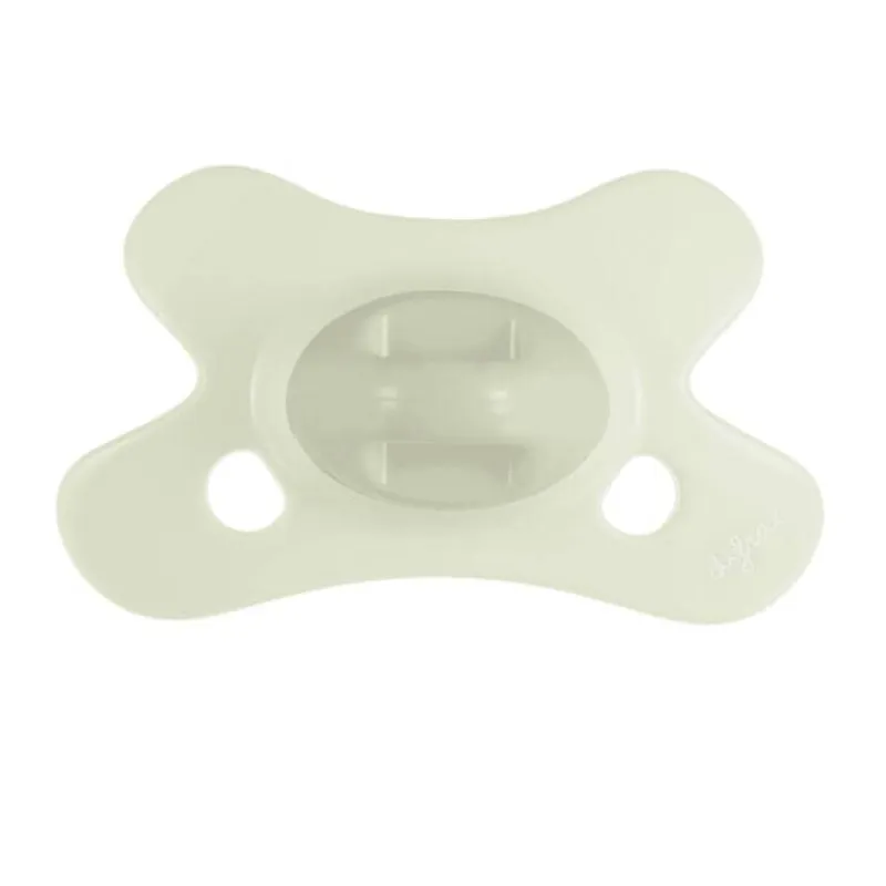 Het lichte, vlindervormige schildje met ventilatiegaatjes zorgt voor een goede luchtcirculatie rond de mond en helpt huidirritatie voorkomen. Dankzij de symmetrische vorm ligt de speen altijd goed, ongeacht hoe je baby hem in de mond neemt.