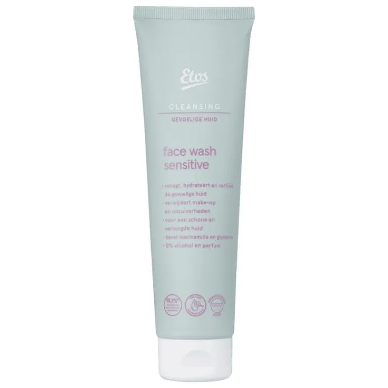 • Etos Sensitive face wash: Verwijdert make-up en onzuiverheden Reinigt het gezicht en geeft een verfrissend gevoel