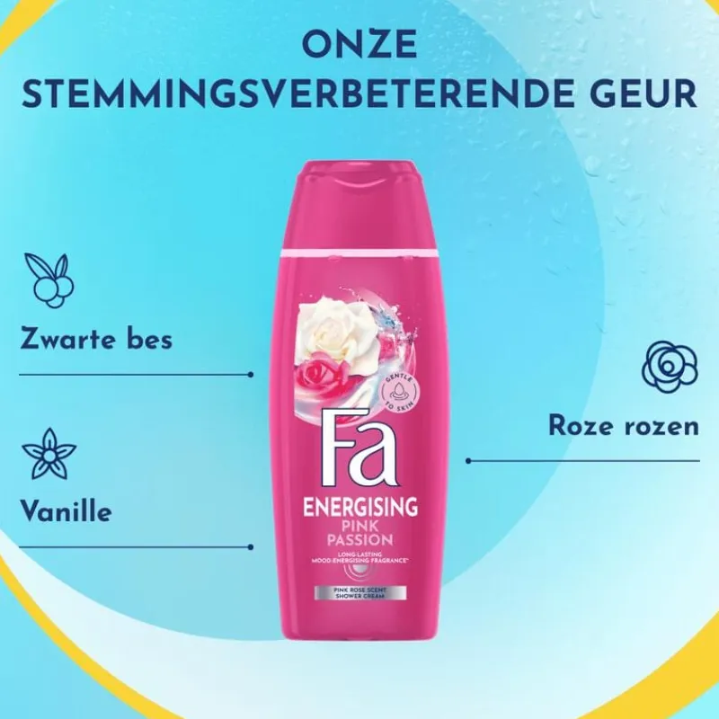 De formule van de Fa Pink Passion douchegel is zacht voor je huid.