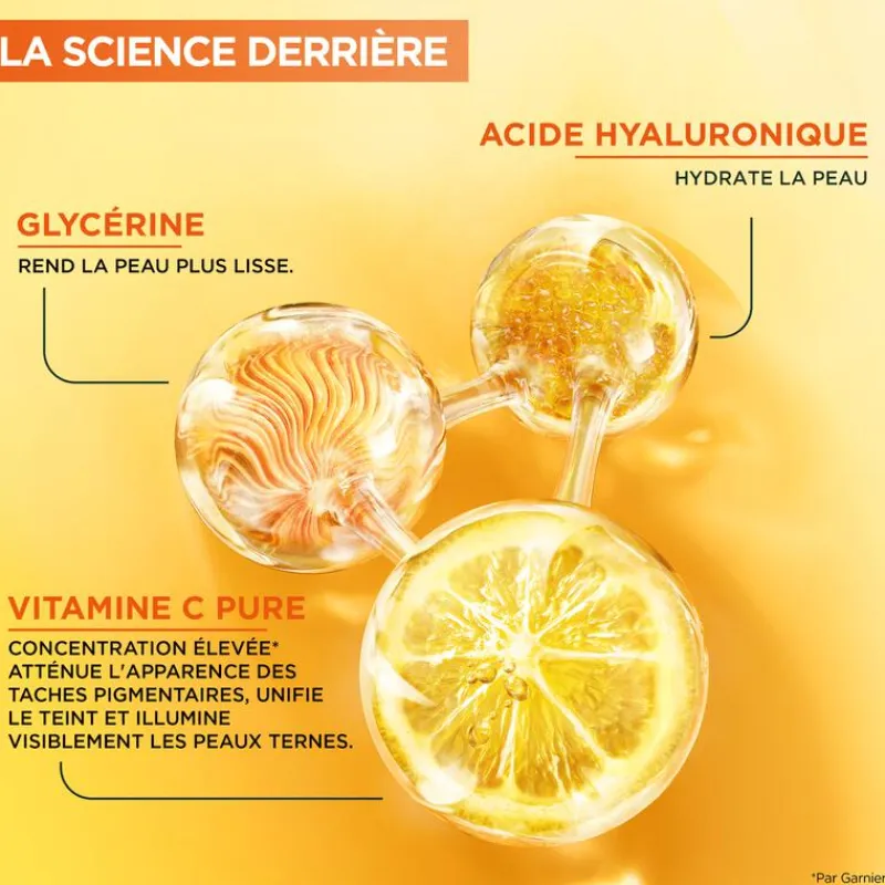 Breidt jouw Skincare routine uit met het Garnier Skinactive 10% Pure Vitamine C Anti-Pigmentvlekken Nachtserum met Hyaluronzuur. Na 3 jaar wetenschappelijk onderzoek is ons laboratorium erin geslaagd om onze hoogste concentratie puur vitamine C [10%], van natuurlijke oorsprong te stabiliseren in een minimalistische formule dit is het eerste nachtserum met een hoge concentratie pure vitamine C van natuurlijke oorsprong, en is bewezen doeltreffend in het verbeteren van de huid. De antioxidant vitamine C staat bekend om de eigenschap om een doffe huid een stralend effect te geven. Daarnaast bevat het serum hyaluronzuur, een bekend actief ingrediënt wat helpt om de huid intensief te hydrateren en te verzachten. De vegan formule is geaccrediteerd cruelty free volgens het Leaping Bunny Programma.