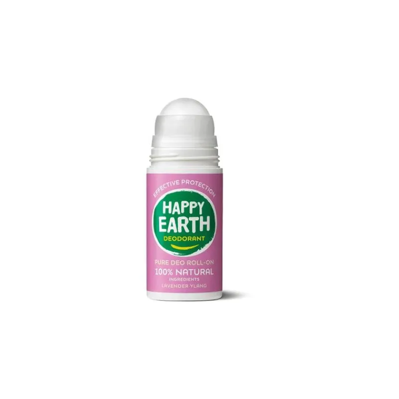 HAPPY EARTH Pure Deodorant Roll-on Lavender Ylang is een frisse lavendel ylang deo vermengd met een vleugje vrolijkheid: botanische extracten, huidverzachtende biologische aloë vera en essentiële oliën.