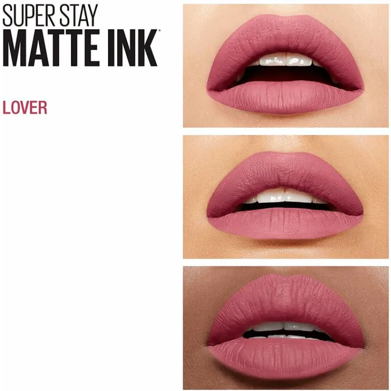 Maybelline New York introduceert de matte ink lipsticks met intense kleurimpact: SuperStay Matte Ink. SuperStay Matte Ink 15 Lover is een liquid lipstick met een licht paarse kleur.