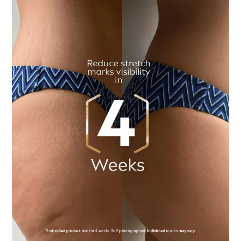 - Onmiddelijk glad huidgevoel op striae/striemen en hydrateert 48** uur lang