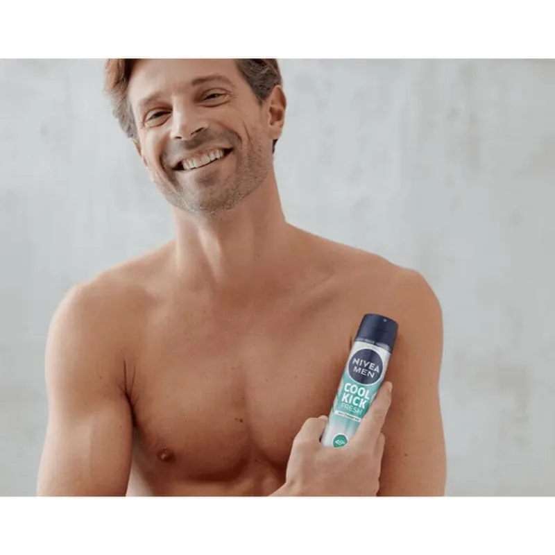 NIVEA MEN Fresh Kick Anti-Transpirant Spray biedt een krachtige frisheidskick dankzij de verfrissende kracht van cactuswater. Deze deo spray voor mannen zorgt voor een langdurig schoon en fris huidgevoel, terwijl het 72 uur betrouwbare bescherming biedt tegen zweet en ongewenste geuren.Met de innovatieve Derma 72u Active Protection technologie werkt deze deodorant voor mannen effectief samen met je huid voor optimale bescherming en comfort, zonder irritatie. De dermatologisch geteste formule is mild voor de huid en bevat geen ethylalcohol. Ideaal voor dagelijks gebruik.Kies voor NIVEA MEN Fresh Kick Spray en ervaar een deo spray die je de hele dag fris en vol energie houdt, zelfs tijdens de drukste dagen.