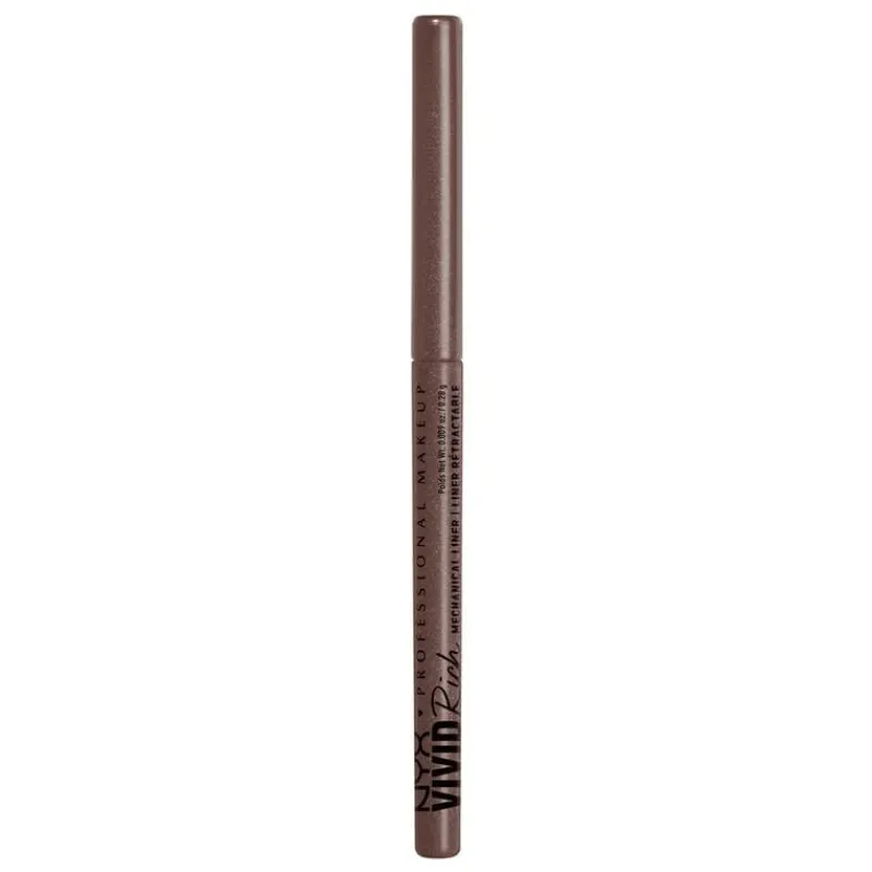 Nyx Professional Makeup Vivid Rich Mechanical Pencil biedt prachtige matte, glinsterende en metallic op edelstenen geinspireerde kleuren. De 12 tinten zijn rijk aan roomzachte, edelsteenkleurige pigmenten en zijn dankzij het twist-up potlood gemakkelijk aan te brengen in één beweging. Mix en match verschillende stralende tinten of kies voor een monochrome uitstraling. Van Spicy Pearl & Amber Stunner tot Aquamarine Dream: met deze levendige eyeliner creër je de kleurrijkste looks. Toon je van je creatiefste kant en gebruik onze mooie levendige liners om indrukwekkende looks te creëren. Ideaal voor zowel beginners als echte pro’s en voor alle huidtypes! Mat, glanzend en metallic oogpotlood Stap 1. Breng Nyx Professional Makeup Vivid Rich Mechanical Pencil aan langs je bovenste wimperlijn om een gemakkelijke oogmake-uplook te creëren.Stap 2. Gebruik de fijne borstelpunt van de Vivid Matte vloeibare liner om in een handomdraai een perfecte wing of grafische lijnen aan te brengen.Stap 3. Creëer met de Epic Wear Liner stick kleurrijke looks voor een waterproof, smugde-proof en fade-proof resultaat.Stap 4. Teken moeiteloos vloeibare zwarte lijntjes of een vlijmscherpe wing met de Epic Ink Liquid liner. Nyx Professional Makeup Vivid Rich Mechanical Pencil biedt prachtige matte, glinsterende en metallic op edelstenen geinspireerde kleuren. De 12 tinten zijn rijk aan roomzachte, edelsteenkleurige pigmenten en zijn dankzij het twist-up potlood moeiteloos aan te brengen in één beweging. Mix en match verschillende stralende tinten of kies voor een monochrome uitstraling. Van Spicy Pearl & Amber Stunner tot Aquamarine Dream: met deze levendige eyeliner creër je de kleurrijkste looks. Toon je van je creatiefste kant en gebruik onze mooie levendige liners om indrukwekkende looks te creëren. Ideaal voor zowel beginners als echte pro’s en voor alle huidtypes!Linerlooks worden gemakkelijk met NYX Vivid Rich. Kies je kleur en breng de kleurrijke eyeliner aan langs je bovenste wimperlijn om een gemakkelijke oogmake-uplook te creëren. Of experimenteer met vloeiende lijnen en wings.De NYX Vivid Rich Eyeliner is verkrijgbaar in de kleuren Always Onyx, Sapphire Bling, Truffle Diamond, Amber Stunner, Aquamarine Dream, Emerald Empire, Tigers Prize, Quartz Queen, Spicy Pearl, Smokin Topaz, Under the Moonstone en It’s Giving Jade. Creëer dus makkelijk elke look die je maar kunt bedenken!NYX Professional staat bekend om haar kwalitatieve, pigmentrijke make-upproducten en weerspiegelt de nieuwste make-up trends. In het portfolio van NYX vind je alles, van lippenstiften en oogschaduw tot eyeliners en concealers. Zowel populair bij het grote publiek, als bij professionele visagisten over de hele wereld!