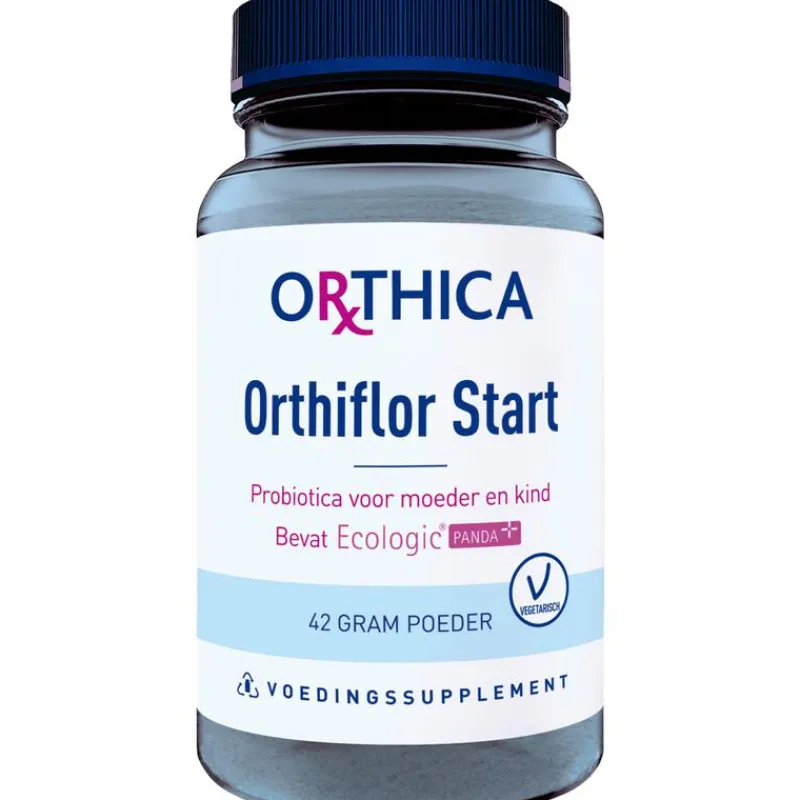 Orthiflor Start is een probioticum voor moeder en baby in poedervorm. Dit probioticum met 3 verschillende bacteriestammen is bedoeld voor zuigelingen. Orthiflor Start kan tijdens de zwangerschap en de borstvoeding worden gebruikt (ook door vegetariërs). Je begint met Orthiflor Start tijdens de laatste 6 weken van je zwangerschap. Na de geboorte kun je Orthiflor Start aan de fles- of moedermelk toevoegen tot de leeftijd van 1 jaar. Vanaf 6 maanden kun je ook overstappen op Dino Orthiflor Poeder dat gebruikt kan worden tot 6 jaar. Voor jezelf is er Orthiflor Fem dat je ook tijdens de borstvoeding kunt gebruiken.
