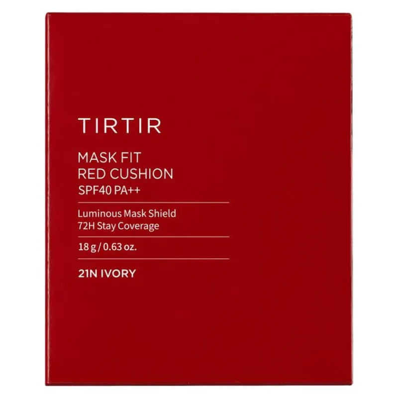 Ontdek de bestseller uit Korea: TIRTIR Mask Fit Red Cushion. Deze cushion foundation biedt een feilloze dekking tot wel 72 uur, zonder touch-ups. De lichtgewicht formule voelt comfortabel aan, camoufleert moeiteloos roodheid en oneffenheden én blijft perfect zitten. De foundation bevat verzorgende hydraterende ingrediënten. Voor een natuurlijke, semi-matte finish met een gezonde, egale uitstraling.