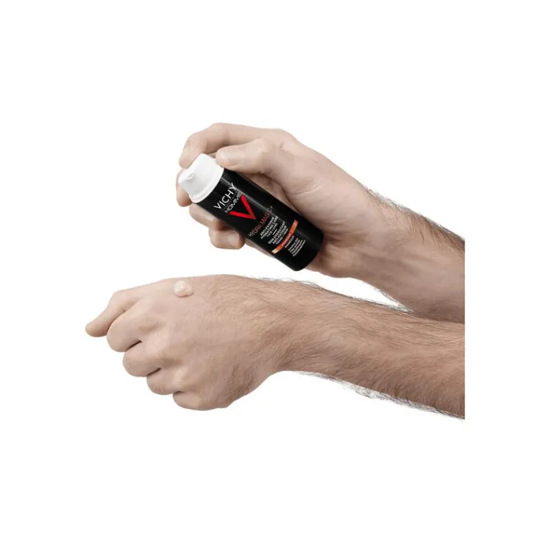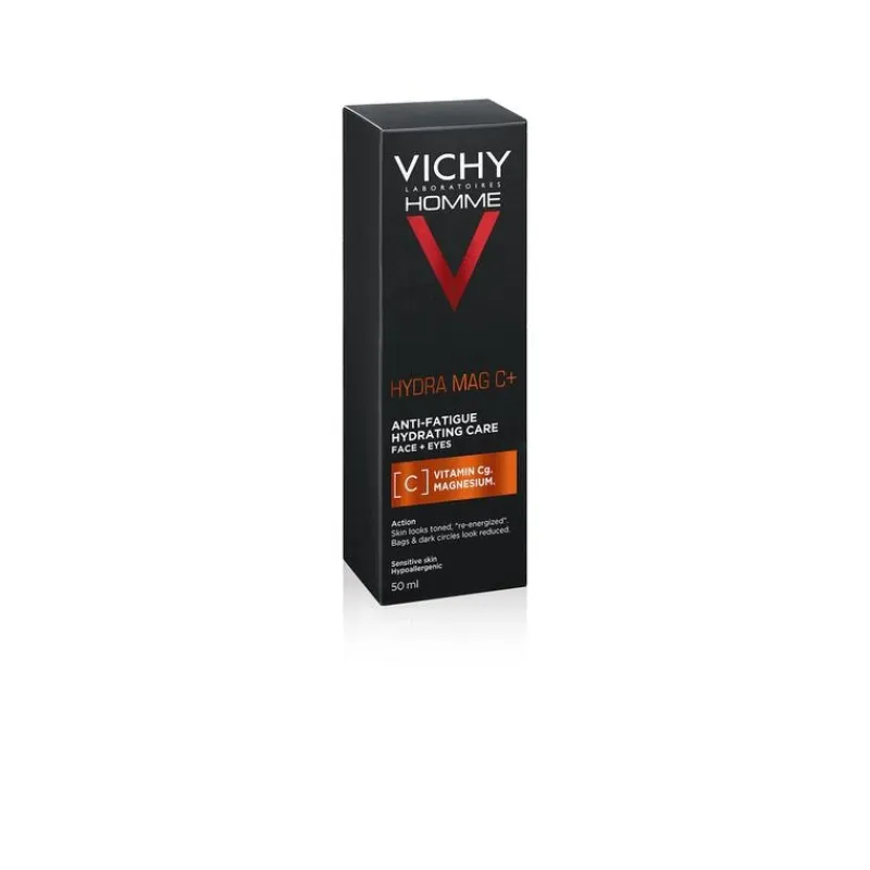 Hydra Mag C+ Anti-Fatigue Moisturiser van Vichy Homme is de ideale gezichts- en oogverzorging voor mannen met een gevoelige huid die tekenen van vermoeidheid vertoont. De formule, verrijkt met magnesium en gefosforiseerde vitamine C, helpt je huid een oppepper te geven, wallen en donkere kringen te verminderen en je opperhuid te versterken tegen de dagelijkse agressies van buitenaf.