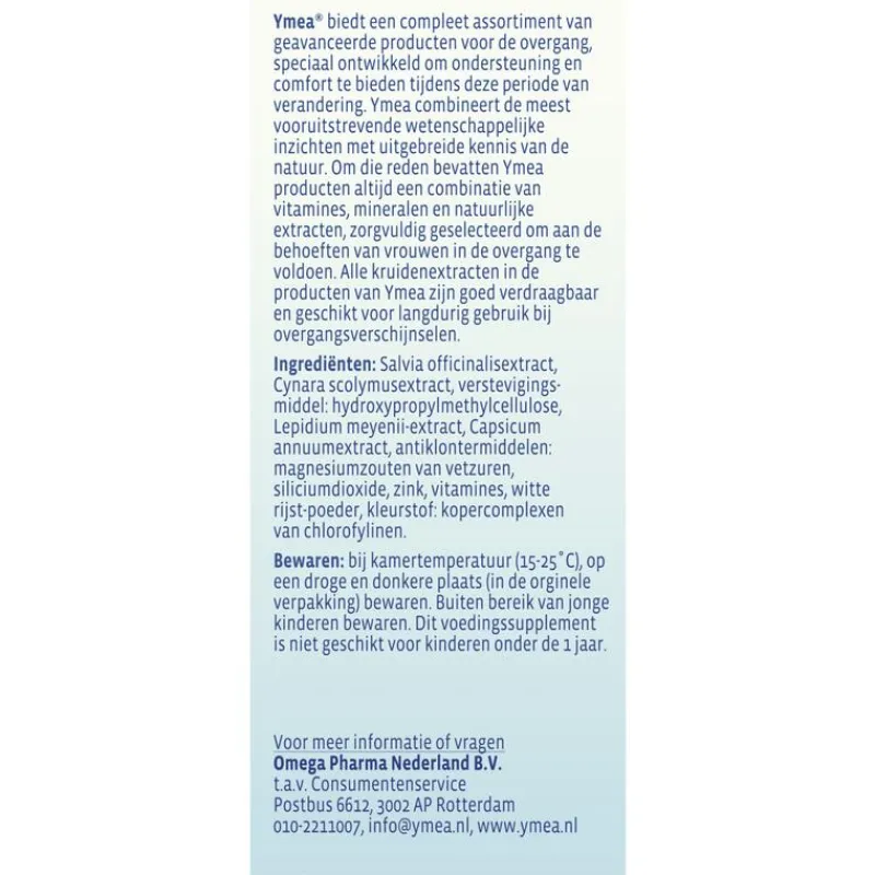 YMEA biedt een compleet assortiment van geavanceerde producten voor de overgang, speciaal ontwikkeld om ondersteuning en comfort te bieden tijdens deze periode van verandering. Ymea combineert de meest vooruitstrevende wetenschappelijke inzichten met uitgebreide kennis van de natuur. Om die reden bevatten Ymea producten altijd een combinatie van vitamines, mineralen en natuurlijke extracten, zorgvuldig geselecteerd om aan de behoeften van vrouwen in de overgang te voldoen. Alle kruidenextracten in de producten van Ymea zijn goed verdraagbaar en geschikt voor langdurig gebruik bij overgangsverschijnselen.