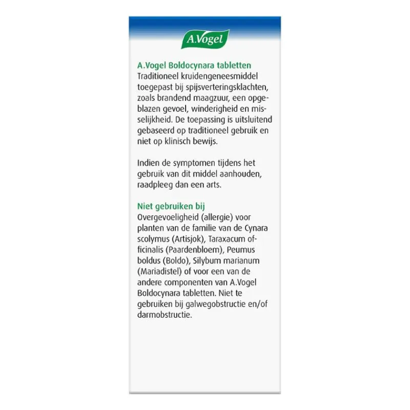 Je spijsvertering heeft tot doel om voedingsstoffen en bouwstoffen uit je dagelijkse voeding te halen. Alles wat je niet nodig hebt of kunt gebruiken moet je lichaam weer verlaten. Om de spijsvertering goed te laten verlopen, moeten verschillende organen nauwgezet hun werk doen. En daar kan nog wel eens wat mis gaan. Ruim 2 miljoen Nederlanders hebben dagelijks last van hun spijsvertering. Boldocynara tabletten van A.Vogel helpen bij 4 van de meest voorkomende spijsverteringsklachten: een opgeblazen gevoel, winderigheid, misselijkheid en (als je de tabletten langere tijd slikt) brandend maagzuur.