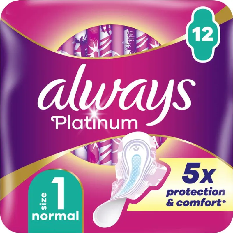 Met Always Platinum maandverband is je menstruatie het laatste waar je aan denkt. Always Platinum Normal (maat 1) met vleugels wordt aanbevolen voor gebruik overdag en is ideaal voor een lichte tot middelmatige menstruatie.