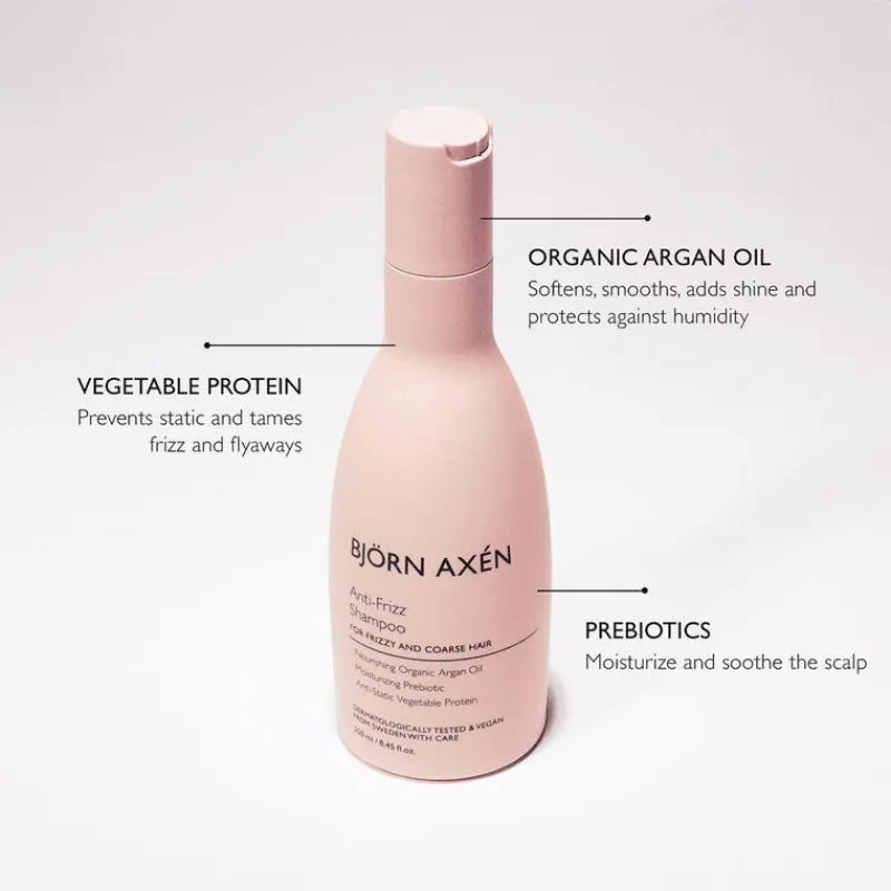 De Anti-Frizz Shampoo van Björn Axén is dé oplossing voor pluizig en onhandelbaar haar (ook heel fijn voor krullend haar). Deze shampoo bevat biologische arganolie en prebiotica die je haar voeden, beschermen en een prachtige glans geven. De plantaardige eiwitten bestrijden effectief pluizigheid, waardoor je haar zacht, glad en makkelijk handelbaar wordt. Kies voor de Anti-Frizz Shampoo en geniet van pluisvrij, glanzend haar!
