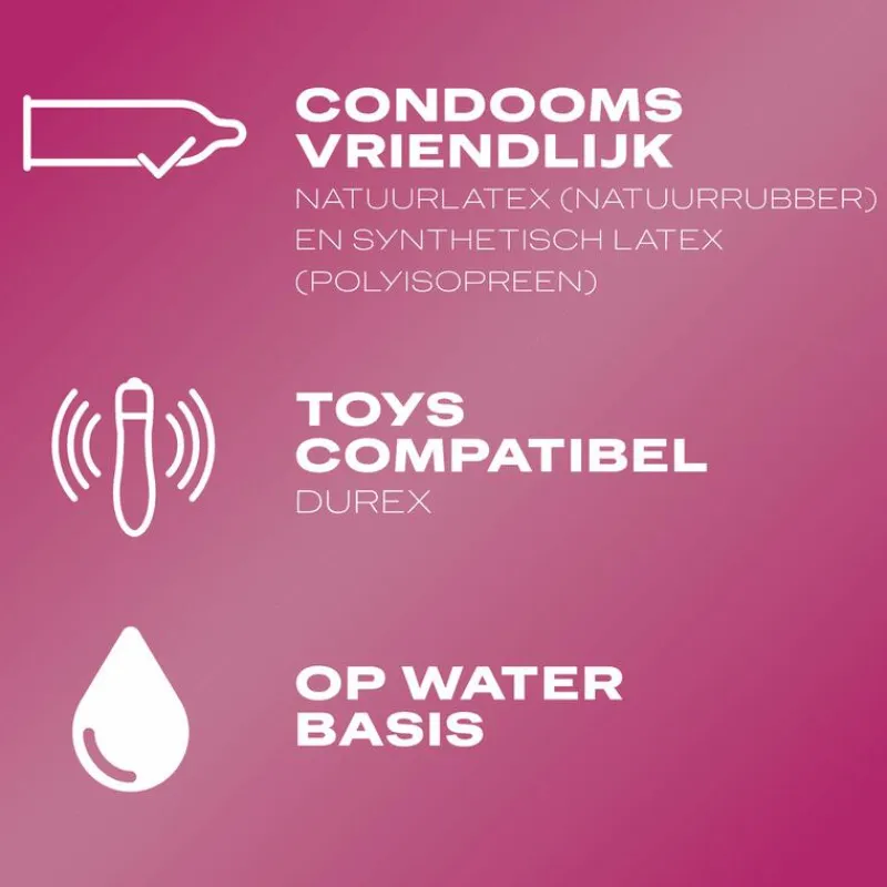 DUREX CRAZY CHERRY GLIJMIDDEL IS EEN GEL OP WATERBASIS MET DE HEERLIJKE SMAAK VAN KERSEN. • Het bevat geen suiker, dus gebruik ‘m zoveel je wilt. Je kunt het gebruiken voor vaginale, anale of orale seks. • Het glijmiddel vermindert vaginale droogheid en ander intiem ongemak voor optimale comfort. • Veilig in het gebruik met condooms • Zonder parabenen. Benieuwd naar de andere lijnen van Durex? Naast de Fun & Adventure lijn heeft Durex nog 3 andere lijnen: Basic Confidence – Deze lijn is voor gebruikers die standaard glijmiddel en condooms willen voor comfortabele, veilige seks. Feeling & Intimacy – Willen jij en je partner meer gevoel ervaren? Kies dan voor de Feeling & Intimacy lijn van Durex met dunnere condooms voor nog meer gevoel. Performance – Beleef meer én langer plezier onder de lakens met de speciale condooms en glijmiddelen uit de Durex Performance lijn.