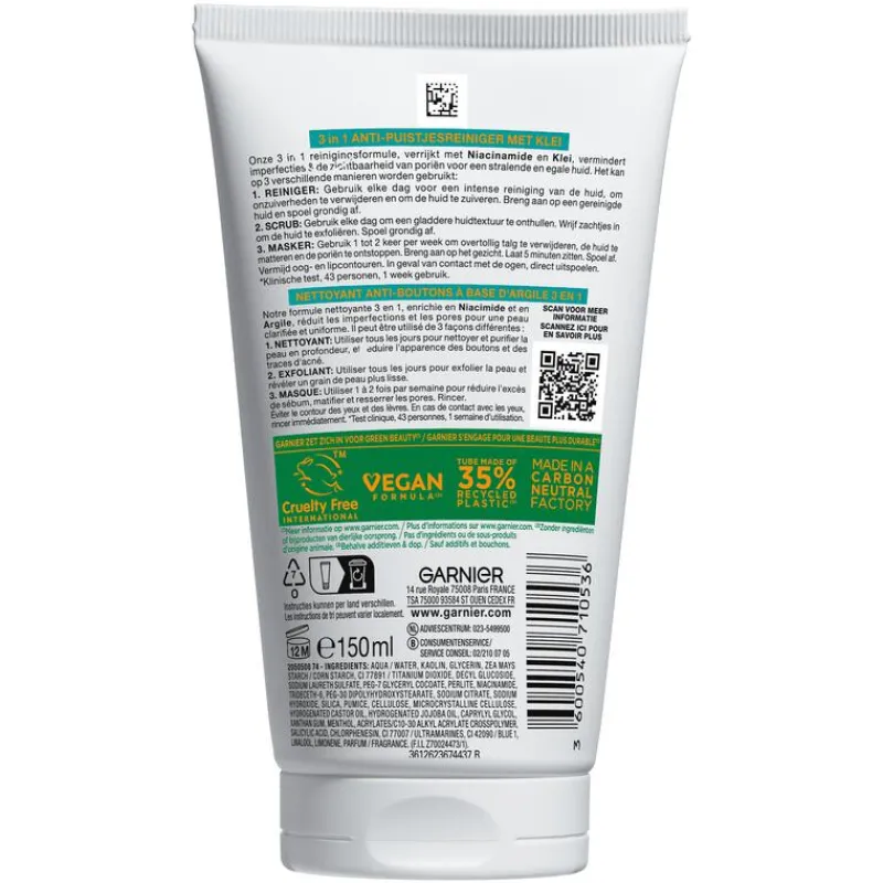 Garnier PureActive 3-in-1 met Klei Argile voor de gemengde Huid met onzuiverheden: