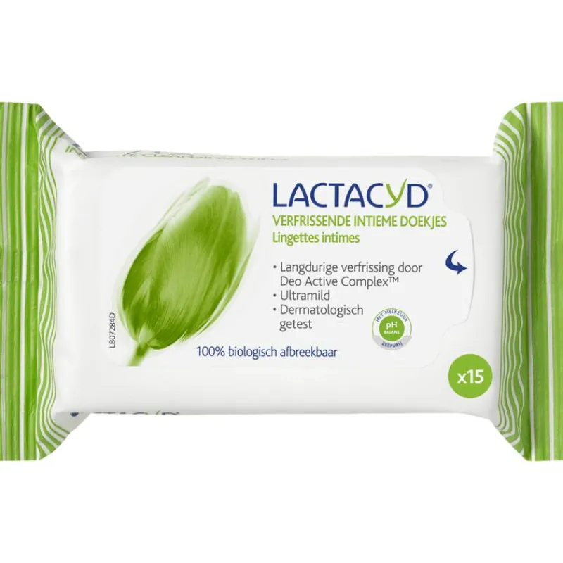 Lactacyd Verfrissende Intieme Doekjes zijn ontwikkeld met natuurlijk melkzuur en Deo Active Complex voor een langdurig fris gevoel.