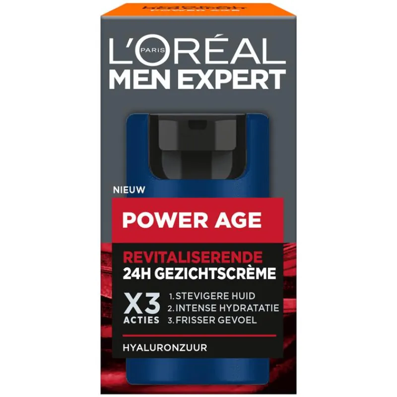 Ontdek de L’Oréal Paris Men Expert Power Age 24H gezichtscrème, een revitaliserende formule speciaal ontwikkeld voor mannen. Deze crème is bijzonder geschikt voor mannen met een droge huid met de eerste tekenen van veroudering. De Power Age lijn is ontworpen om een complete verzorgingsroutine te bieden, waarbij hydratatie en bescherming centraal staan. De Power Age gezichtscrème is bedoeld voor dagelijks gebruik en kan zowel ’s ochtends als ’s avonds worden aangebracht. Voor het beste resultaat breng je de crème gelijkmatig aan op een droge en schone huid. De textuur is rijk en voedend, en de crème trekt snel in zonder een vettig laagje achter te laten. De formule is ook geschikt om na het scheren te gebruiken, om de huid te kalmeren en eventuele irritatie of een branderig gevoel te verzachten. Voor een complete verzorgingsroutine kun je de Power Age gezichtscrème combineren met andere producten uit de L’Oréal Paris Men Expert Power Age lijn. Begin bijvoorbeeld met het Power Age Serum na het reinigen van je gezicht, en vervolg daarna met de hydraterende gezichtscrème. Zo geef je je huid de verzorging die het verdient.