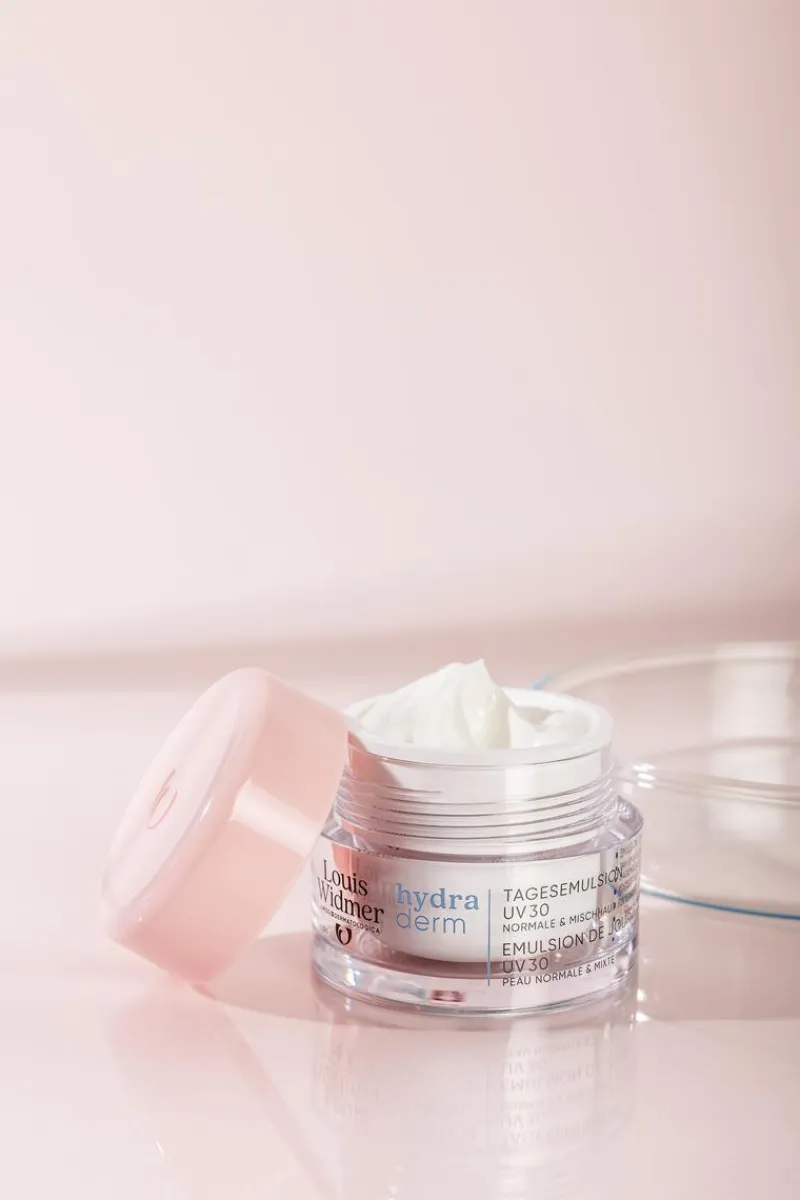 Louis Widmer hydraderm Dagemulsie UV 30 heeft een lichte textuur met UV-bescherming en bevat het biostimulatorencomplex van Louis Widmer.