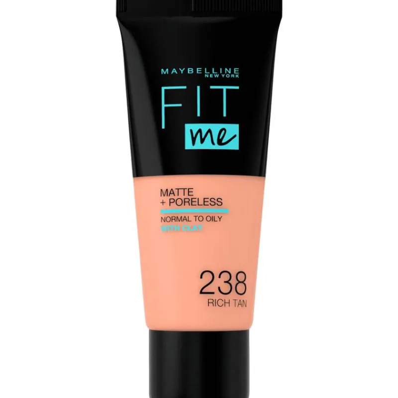 Maybelline New York Fit Me Matte & Poreless Foundation 238 Rich Tan is een medium dekkende foundation die moeiteloos kleurt met de textuur en kleur van de huid voor een natuurlijk ogend resultaat.