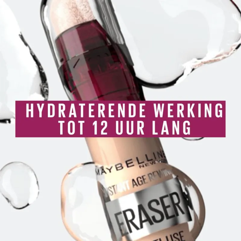 De Maybelline Instant Anti Age Eraser is een absolute favoriet onder beautyliefhebbers en een must-have in elke make-uptas. Deze iconische concealer staat bekend om zijn ultra-dekkende formule die donkere kringen, wallen en andere imperfecties moeiteloos camoufleert. De romige textuur voelt zacht aan op de huid en laat zich gemakkelijk aanbrengen met de ingebouwde sponsapplicator voor een snelle en vlekkeloze applicatie, waar je ook bent. Verrijkt met gojibes extract, hydrateert de Instant Anti Age Eraser de delicate huid rondom de ogen en helpt fijne lijntjes te verminderen. De toevoeging van Haloxyl neutraliseert donkere kringen effectief voor een frisse, uitgeruste blik. De verbeterde formule trekt niet in fijne lijntjes, zorgt voor een egale teint en een gladde finish. De Instant Anti Age Eraser is nu verkrijgbaar in een breder scala aan kleuren, zodat je de perfecte match voor jouw huidskleur kunt vinden. Weg met donkere kringen en wallen, hallo stralende ogen! Ontdek de magie van de Maybelline Instant Anti Age Eraser en ervaar zelf waarom zoveel beauty fans erbij zweren.