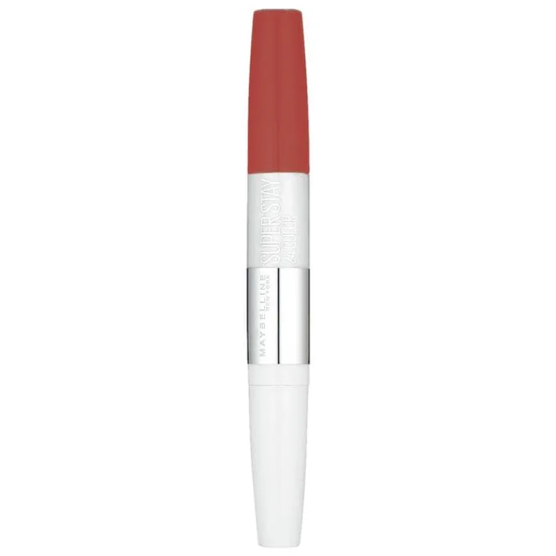 De SuperStay 24H 725 Caramel Kiss Nude is de langhoudende lippenstift die tot 24 uur houdt, zonder te vervagen. De roze 2-in-1 lippenstift bestaat uit een vloeibare gekleurde formule en een verzorgende balsem. Roze vloeibare lippenstift die tot 24 uur blijft zitten Stap 1 Kleur je lippen. Stap 2 Gebruik de verzorgende balsem Micro-flex formule voor een egale dekking De Maybelline liquid lipstick heeft een puntige applicator voor een precieze applicatie Met verzorgende lippenbalsem om de lippen zacht en soepel te houden.
