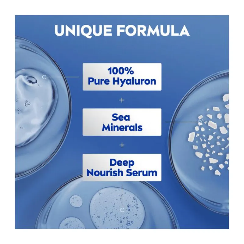- Puur hyaluronzuur, zeemineralen en voendend serum