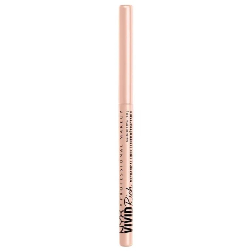 Nyx Professional Makeup Vivid Rich Mechanical Pencil biedt prachtige matte, glinsterende en metallic op edelstenen geinspireerde kleuren. De 12 tinten zijn rijk aan roomzachte, edelsteenkleurige pigmenten en zijn dankzij het twist-up potlood gemakkelijk aan te brengen in één beweging. Mix en match verschillende stralende tinten of kies voor een monochrome uitstraling. Van Spicy Pearl & Amber Stunner tot Aquamarine Dream: met deze levendige eyeliner creëer je de kleurrijkste looks. Toon je van je creatiefste kant en gebruik onze mooie levendige liners om indrukwekkende looks te creëren. Ideaal voor zowel beginners als echte pro’s en voor alle huidtypes! Mat, glanzend en metallic oogpotlood Stap 1. Breng Nyx Professional Makeup Vivid Rich Mechanical Pencil aan langs je bovenste wimperlijn om een gemakkelijke oogmake-uplook te creëren.Stap 2. Gebruik de fijne borstelpunt van de Vivid Matte vloeibare liner om in een handomdraai een perfecte wing of grafische lijnen aan te brengen.Stap 3. Creëer met de Epic Wear Liner stick kleurrijke looks voor een waterproof, smugde-proof en fade-proof resultaat.Stap 4. Teken moeiteloos vloeibare zwarte lijntjes of een vlijmscherpe wing met de Epic Ink Liquid liner. Nyx Professional Makeup Vivid Rich Mechanical Pencil biedt prachtige matte, glinsterende en metallic op edelstenen geinspireerde kleuren. De 12 tinten zijn rijk aan roomzachte, edelsteenkleurige pigmenten en zijn dankzij het twist-up potlood moeiteloos aan te brengen in één beweging. Mix en match verschillende stralende tinten of kies voor een monochrome uitstraling. Van Spicy Pearl & Amber Stunner tot Aquamarine Dream: met deze levendige eyeliner creëer je de kleurrijkste looks. Toon je van je creatiefste kant en gebruik onze mooie levendige liners om indrukwekkende looks te creëren. Ideaal voor zowel beginners als echte pro’s en voor alle huidtypes!Linerlooks worden gemakkelijk met NYX Vivid Rich. Kies je kleur en breng de kleurrijke eyeliner aan langs je bovenste wimperlijn om een gemakkelijke oogmake-uplook te creëren. Of experimenteer met vloeiende lijnen en wings.De NYX Vivid Rich Eyeliner is verkrijgbaar in de kleuren Always Onyx, Sapphire Bling, Truffle Diamond, Amber Stunner, Aquamarine Dream, Emerald Empire, Tigers Prize, Quartz Queen, Spicy Pearl, Smokin Topaz, Under the Moonstone en It’s Giving Jade. Creëer dus makkelijk elke look die je maar kunt bedenken!NYX Professional staat bekend om haar kwalitatieve, pigmentrijke make-upproducten en weerspiegelt de nieuwste make-up trends. In het portfolio van NYX vind je alles, van lippenstiften en oogschaduw tot eyeliners en concealers. Zowel populair bij het grote publiek, als bij professionele visagisten over de hele wereld!