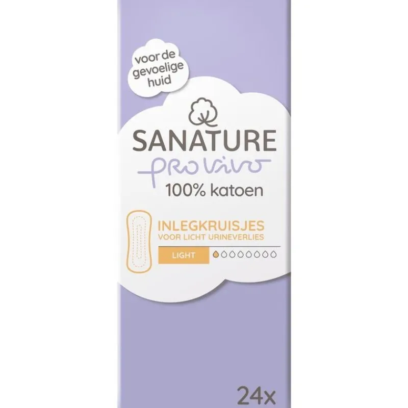 Sanature 100% Katoenen Incontinentie Inlegkruisjes Light bieden je ultiem comfort bij licht urineverlies, dankzij het HyDri filter. Het ultradunne inlegkruisje voor urineverlies bevat een groot absorberend vermogen en laat je huid droog aanvoelen. Sanature 100% Katoen Incontinentie Inlegkruisjes Light bevatten geen bleekmiddelen. 100% katoen zorgt voor een ademend vermogen en is essentieel voor een gezonde hygiëne bij een gevoelige huid. De microcapsules van het Odor Control System neutraliseren eventuele geurtjes. Voor een fris gevoel gedurende de hele dag gebruik je de Sanature 100% Katoenen Incontinentie Inlegkruisjes Light: