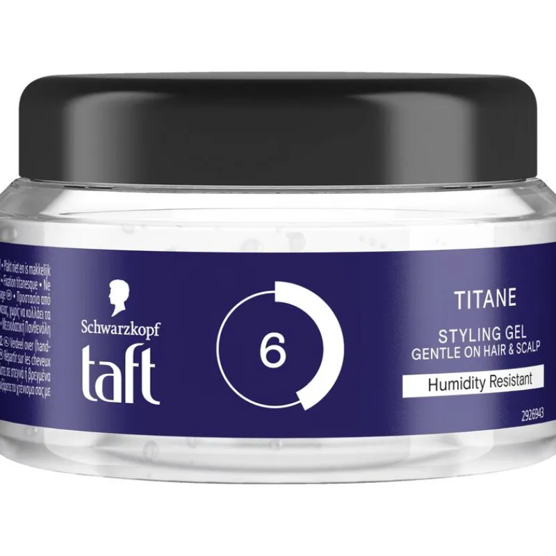Taft Titane Styling Gel is vochtbestendig. Het geeft je haar een titanium-sterke hold en plakt niet. Deze gel is gemakkelijk uit te wassen en is vrij van alcohol (ethylalcohol). Deze gel is zacht voor haar en hoofdhuid en bevat hydraterende panthenol. Alle Taft formules zijn vegan* en PETA gecertificeerd**.