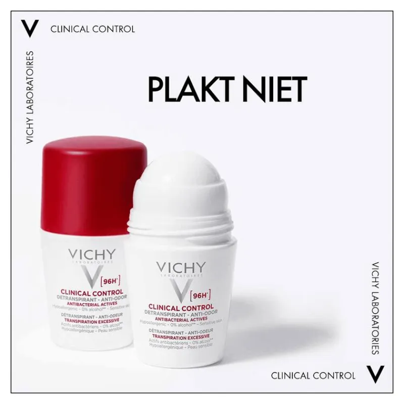 Vichy Clinical Control 96H is een roll-on deodorant met klinisch bewezen doeltreffendheid tegen overmatige transpiratie. De antibacteriële en geurbestrijdende werking werkt continu, zelfs in kleine doses, en elimineert de bacteriën die verantwoordelijk zijn voor onaangename zweetgeurtjes.